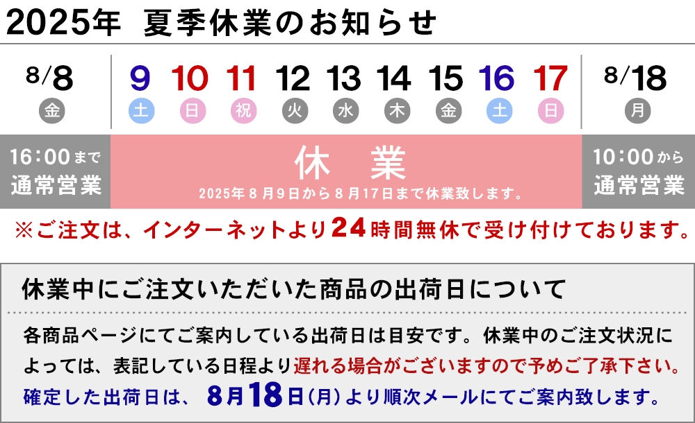 ※ご注文状況は、リアルタイムではありません。ご注文後、こちらの表に表示されるまでお時間がかかりますのでご了承ください。