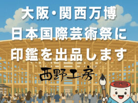 \西野オンライン工房、万博に出陣/ まさかの…いや、まさかじゃない! 大阪・関西万博「日本国際芸術祭」にて、 うちの印鑑が出品されます! 「こんなハンコ、見たことない!」と唸っていただける自信作、並べてお… -