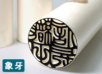 象牙は、印鑑の素材の中では最高の印材と言っても良いでしょう。耐久性、耐摩擦性に特に優れ、重量感を誇り、手触り、質感とも最高の素材です。使い込むにつれて美しい光沢が出てきます。朱肉の馴染みもよく、使うほどに愛着がわく印鑑となるでしょう。象牙のやや外側部分から採られた印材で、側面には少し繊維的な縞模様が見られ、頭部には、やや粗めの網模様が見られます。