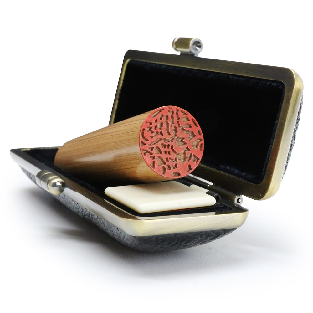 | 付 属 品 | 朱肉付き印鑑ケース1個 ※牛もみ革印鑑ケース(黒色・赤色・茶色)から選択可能。化粧箱1個。 |